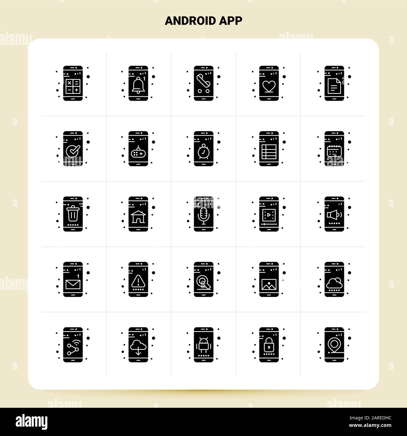 Solid 25 Android App Icon Set Vector Glyph Style Design Black