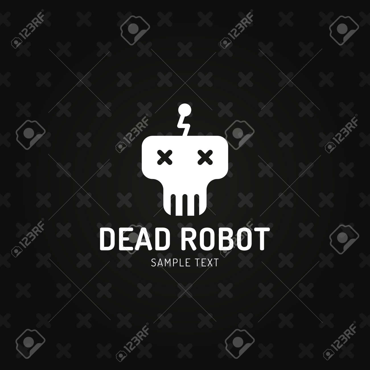 Dead Robot Logo Vector Template Skull Illustration In Flat Style