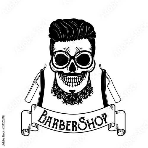 Barbershop Logo Template Bearded Skull Vector Illustration Design