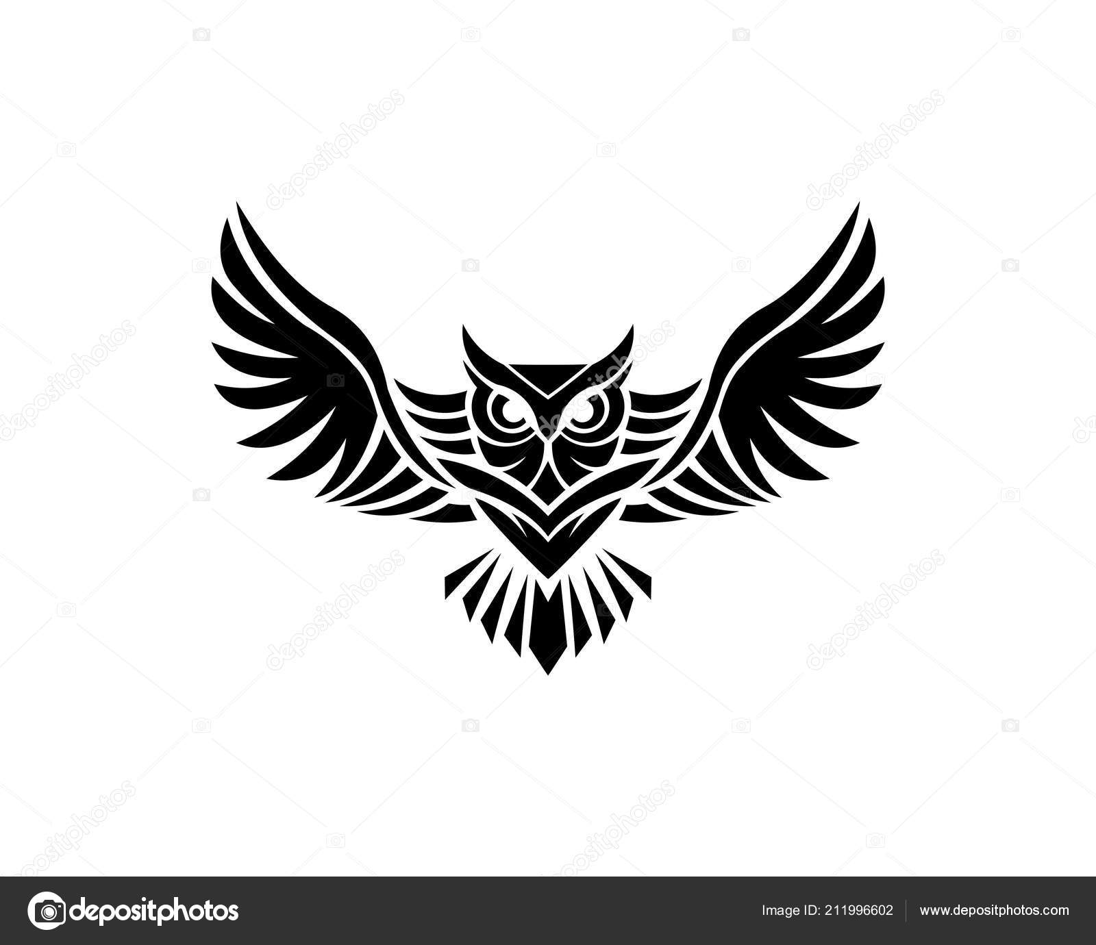 Black Owl Logo Vector Temlate On The White Background Flat Sign Owl