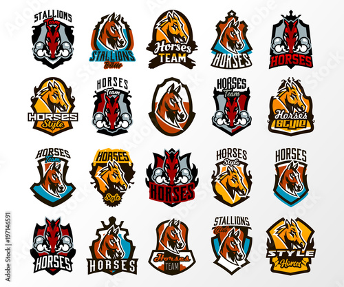 A Large Colorful Collection Of Emblems Logos Badges Of Horses