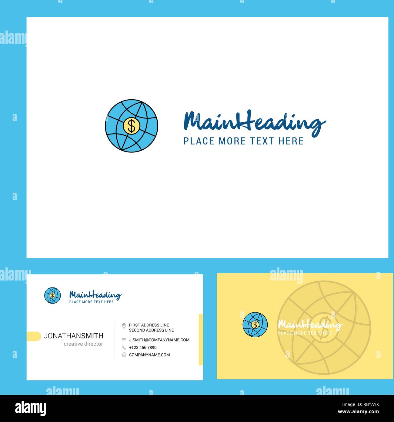 World Globe Logo Design With Tagline Front And Back Busienss