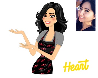 Cute Bakery Chef Girl Welcome Smiling Cartoon Art Illustration