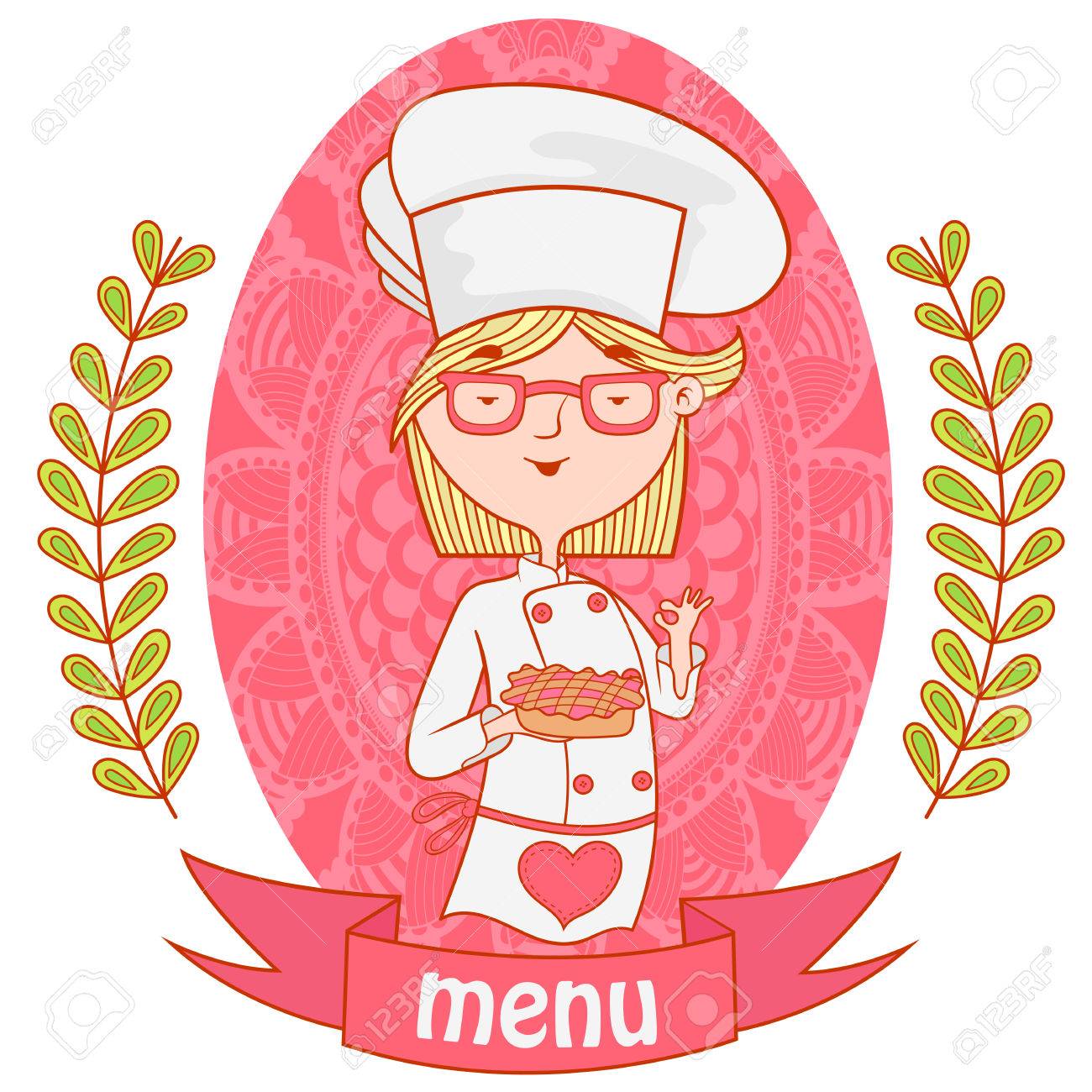 Cute Girl Chef Cook With The Pie Menu Background Pattern Of