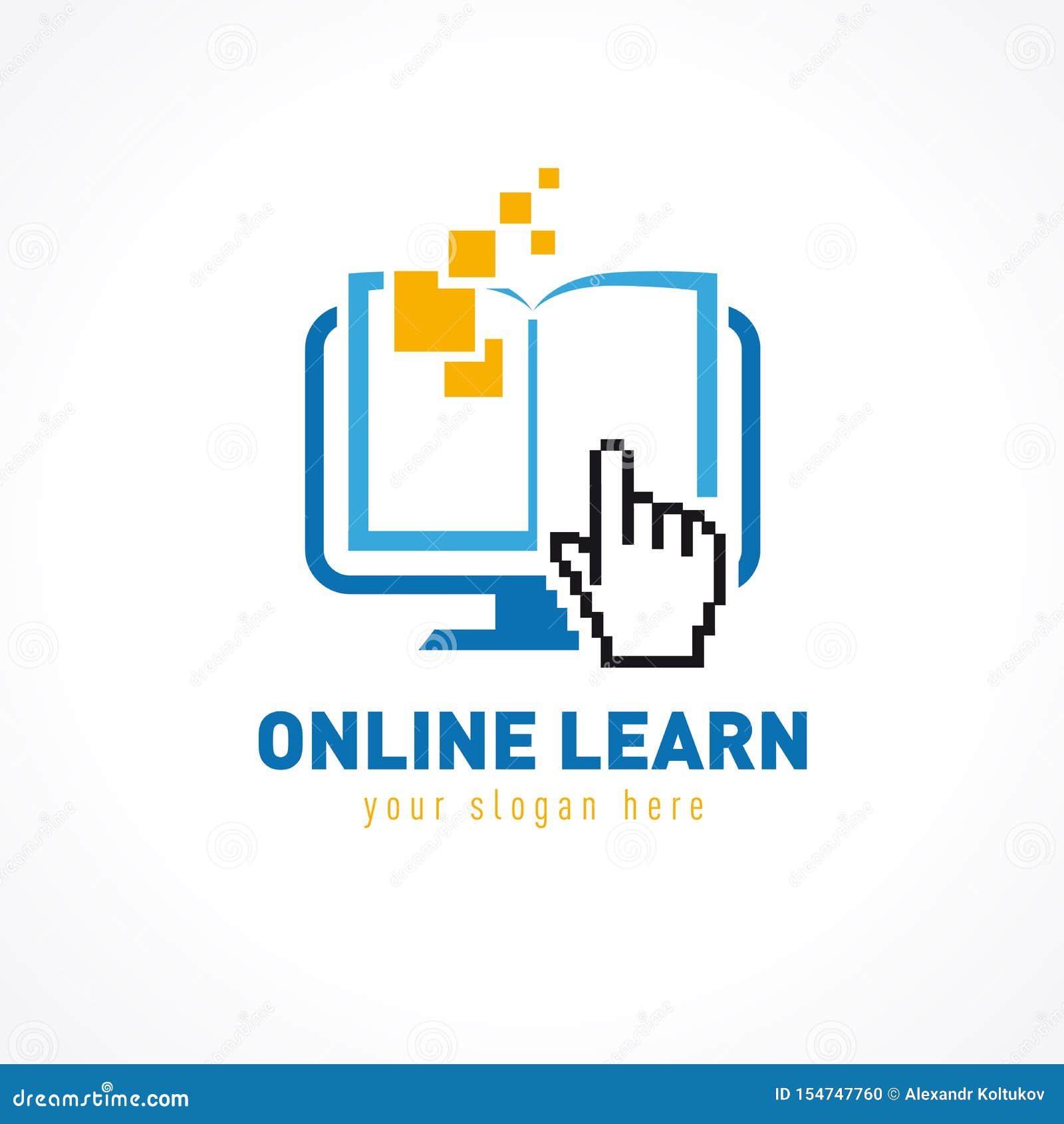 Online Education Logo Book And Pixel Hand Stock Vector